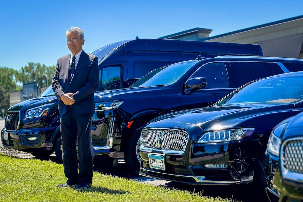 We pride ourselves on the fact that each and every chauffeur employed at Black Tie Limousine Service Minneapolis MN is guaranteed to provide professionalism that meets the PAX Chauffeur Training Program standard. From perfectly pressed black suits and ties, to meticulously hand washed and dried vehicles, each chauffeur takes pride in the cleanliness of their vehicles. Their expertise expands to lengthy routing knowledge of Minnesota’s highways and cities, to excellent recommendations for dinners, shows, and tour locations. Their professionalism and skill includes intuiting the climate and cabin temperature, and making adjustments accordingly to assure the vehicle is comfortable and relaxing in summer and winter alike. Of course, these controls are also available to clients in the back seat via the rear climate control options. Additionally, smooth driving and skilled acceleration allows for guests to utilize items like laptops and phones to take meetings or calls during transfers. All conversations or meetings that occur in our vehicle we guarantee will remain private and confidential, as part of our chauffeur training is to tune out private conversations and focus on getting the guests to and from their locations safely and on time.